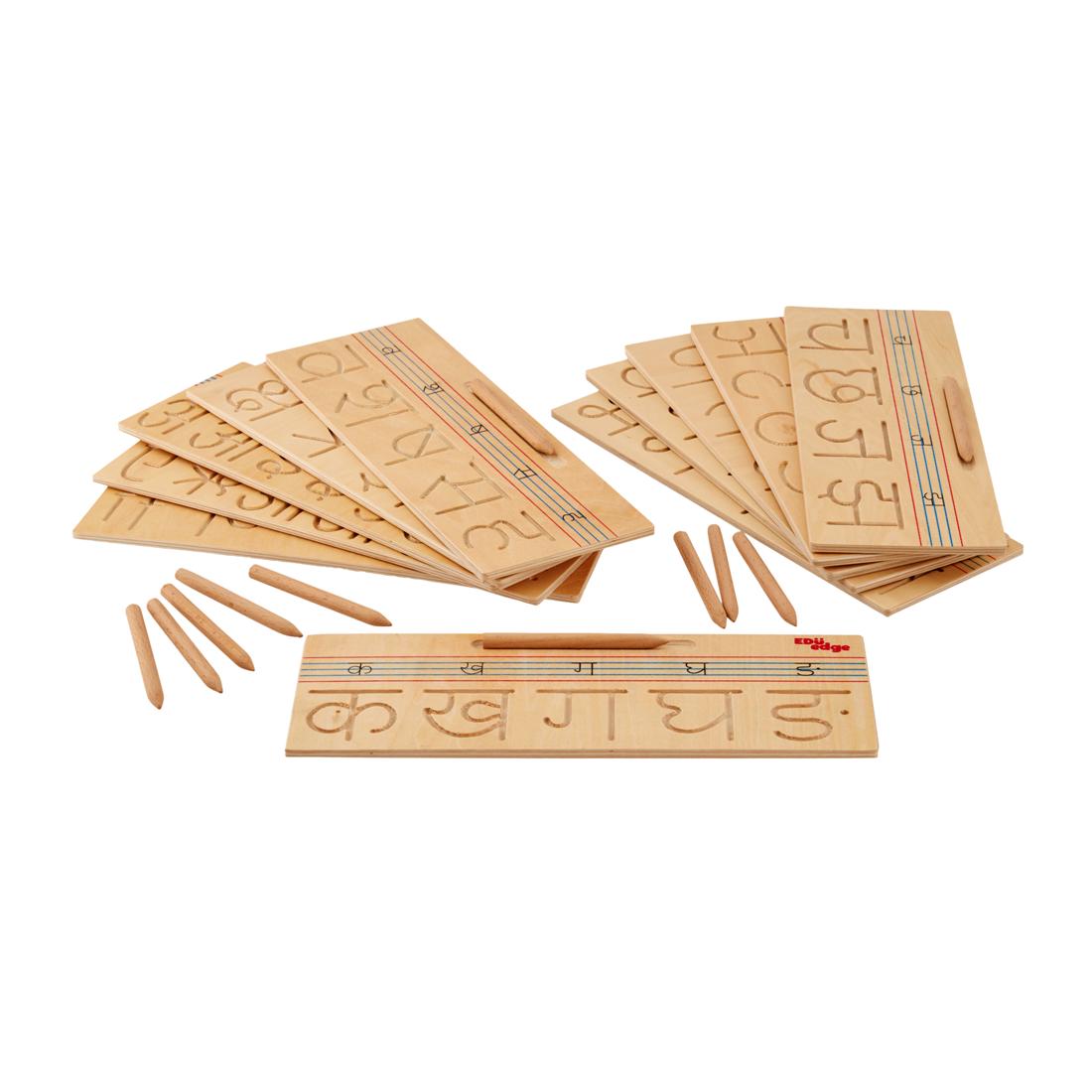 Activity-Trace grooves with dummy pencil to learn writing Hindi letters .